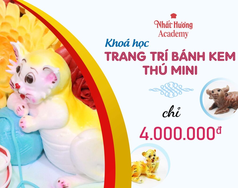 Khoá học trang trí bánh kem – thú mini tại Nhat Huong Baking Center không chỉ mang tới bạn cơ hội thực hành làm cốt bánh với công thức và phương pháp đơn giản nhất mà còn hướng dẫn bạn nghệ thuật tạo hình những con thú bằng kem sáng tạo và ngộ nghĩnh dành tặng cho gia đình, bạn bè và những người bạn yêu thương.