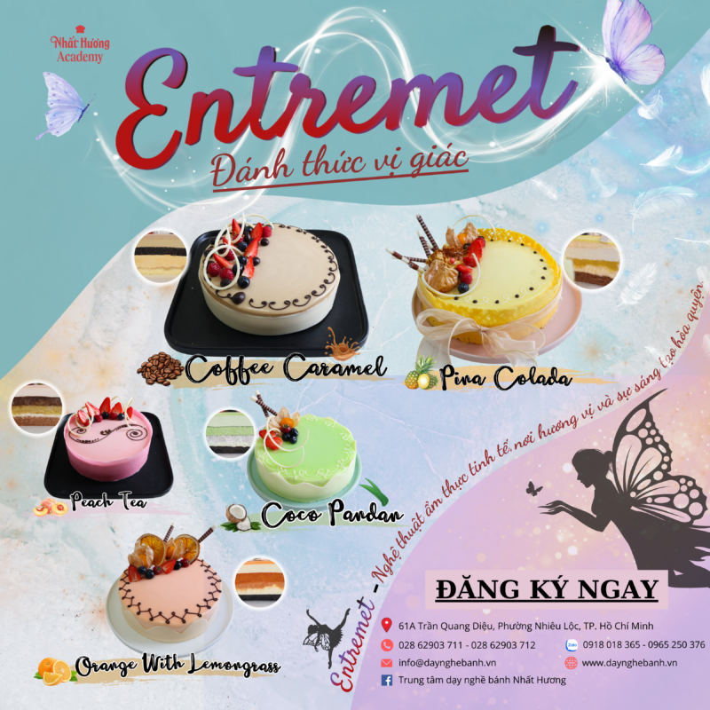 Hãy tham gia ngay khóa học “𝐄𝐧𝐭𝐫𝐞𝐦𝐞𝐭”. Khóa học dành cho tất cả những ai yêu thích làm bánh, mong muốn nâng cao tay nghề và sáng tạo những tuyệt tác ẩm thực.