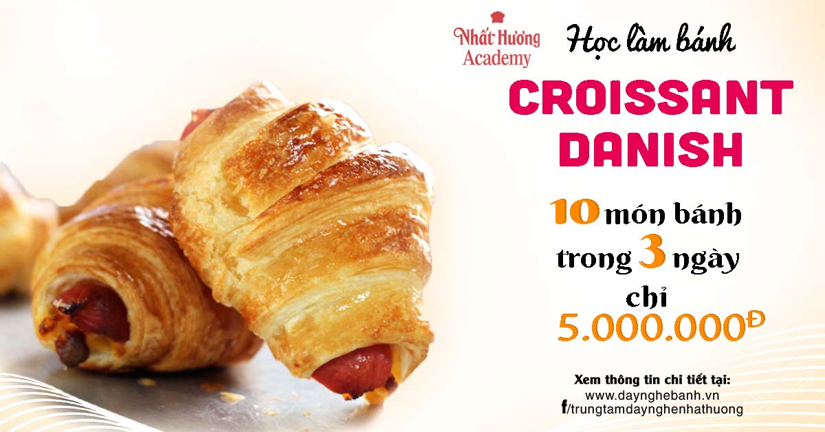 Trung tâm dạy nghề bánh Nhất Hương mang tới bạn Khoá học làm bánh Croissant – Danish. Đây là một cơ hội tốt để bạn được học và thực hành với hơn 10 món bánh thuộc 02 dòng bánh phổ biến ở Châu Âu với hương vị tuyệt vời.